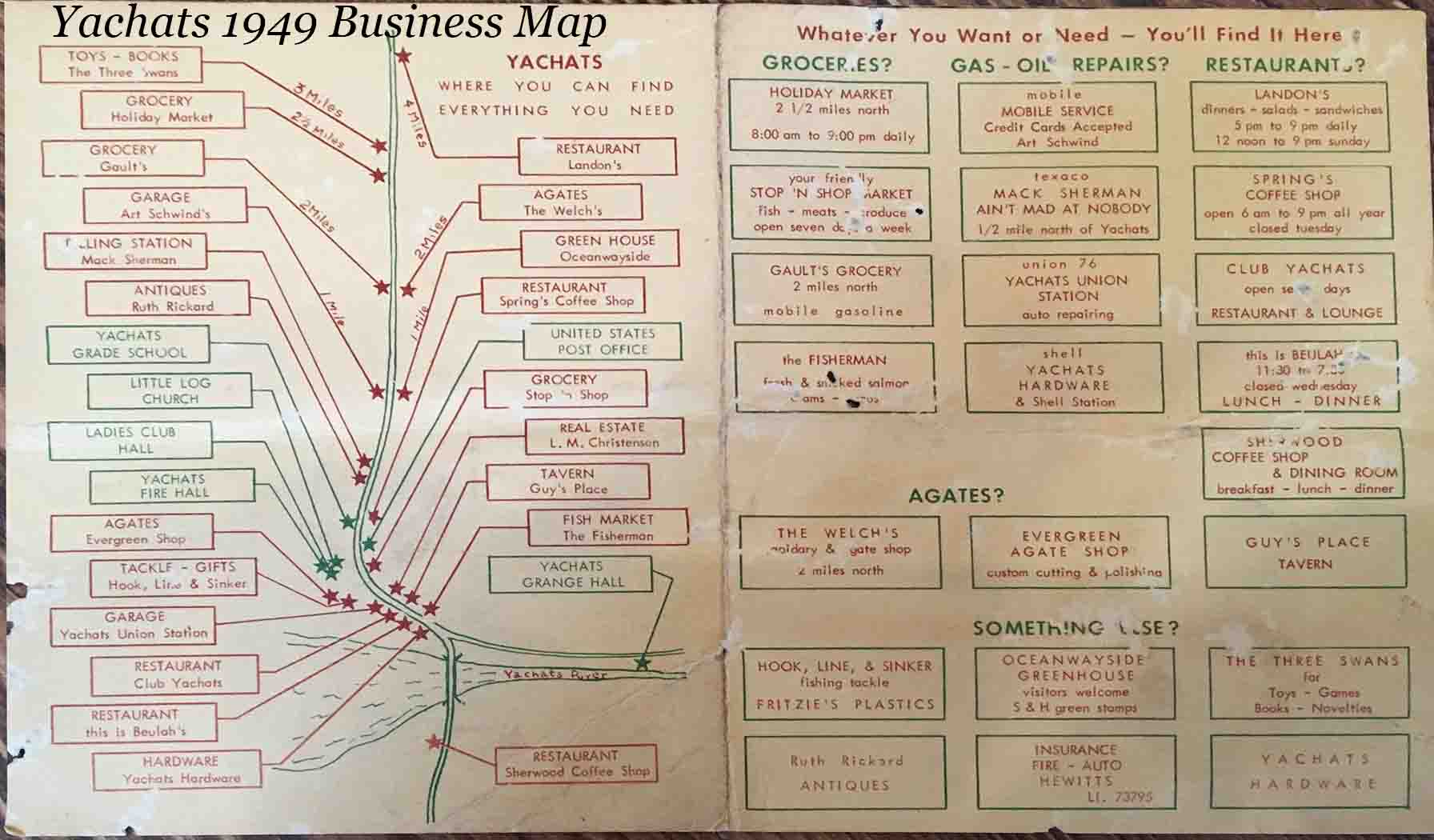 To get you started down memory lane here's a brochure and map of business in Yachats in 1949.